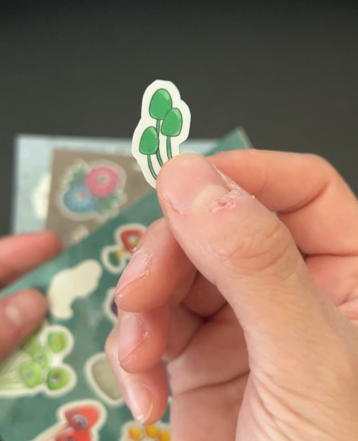A 4”x6” sticker sheet featuring 13 cute mushrooms. Sealed with a clear laminate. Small stickers perfect for decorating water bottles, sketchbooks, and more.
