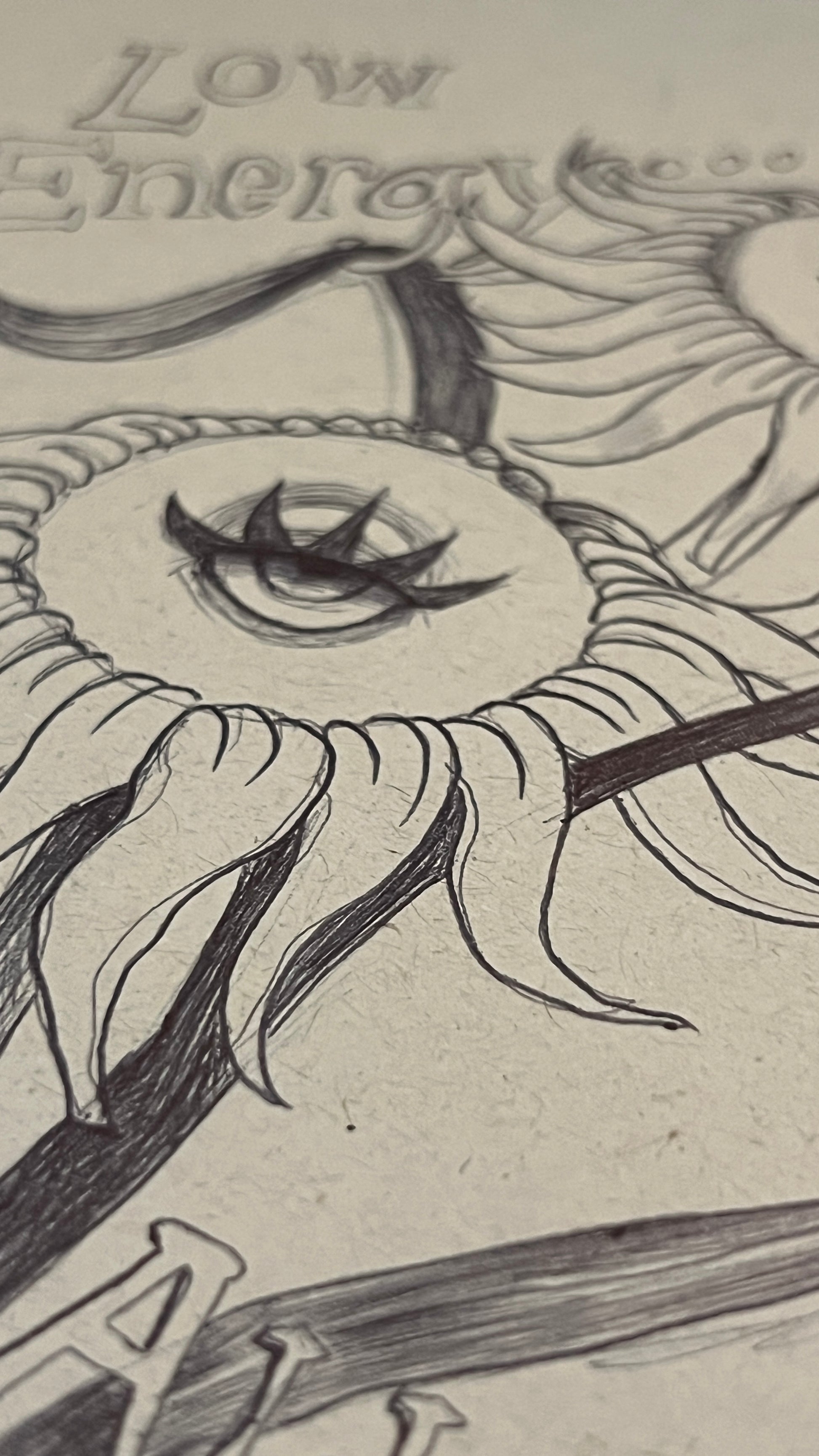 An original pen drawing of a couple of tired flowers. 5.5" x 8.5" toned paper.